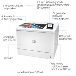 | – Bedrijf Laser Kleur – 1200 x 1200 DPI – Printkleuren: Zwart, Cyaan, Magenta, Geel – A3 41 ppm – Duplex printen Direct printen – USB-poort Wifi Ethernet LAN Bluetooth – LCD Ingebouwd display – Gebruiksindicatie (maximaal): 150000 pagina’s per maand – Totaal aantal invoerladen: 2 Totale invoercapaciteit: 650 vel Totale uitvoercapaciteit: 250 vel – Intern geheugen: 1536 MB Type processor 1200 MHz |