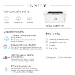 Print efficiënt. Past overal. Een efficiënte, hoogwaardige laserprinter die bij je ruimte en je budget past. Print snel met HP’s kleinste laserprinter in zijn klasse[1] en de tijdbesparende HP Smart-app.[2,3] Kies voor laserafdrukken van professionele kwaliteit en een eenvoudige installatie..