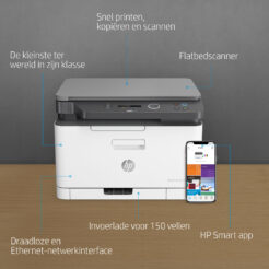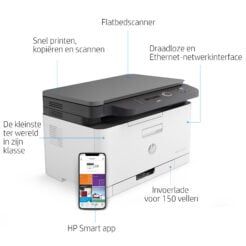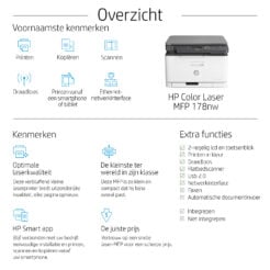 | – Thuis & kantoor Laser Afdrukken in kleur – 600 x 600 DPI – Printkleuren: Zwart, Cyaan, Magenta, Geel – A4 18 ppm – KopiĆ«ren in kleur Scannen in kleur – Apple AirPrint, Google Cloud Print, Mopria Print Service – Direct printen – USB-poort Wifi Ethernet LAN – Intern geheugen: 128 MB Type processor 800 MHz – 12,9 kg |