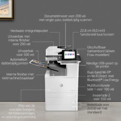 | – Bedrijf Laser Afdrukken in kleur – 1200 x 1200 DPI – Printkleuren: Zwart, Cyaan, Magenta, Geel – A3 46 ppm – Kopiëren in kleur Scannen in kleur Faxen in kleur – Mopria Print Service, HP ePrint, Apple AirPrint, Google Cloud Print – Direct printen – USB-poort Wifi Ethernet LAN Bluetooth – Intern geheugen: 5120 MB Type processor 1200 MHz – 126,8 kg |