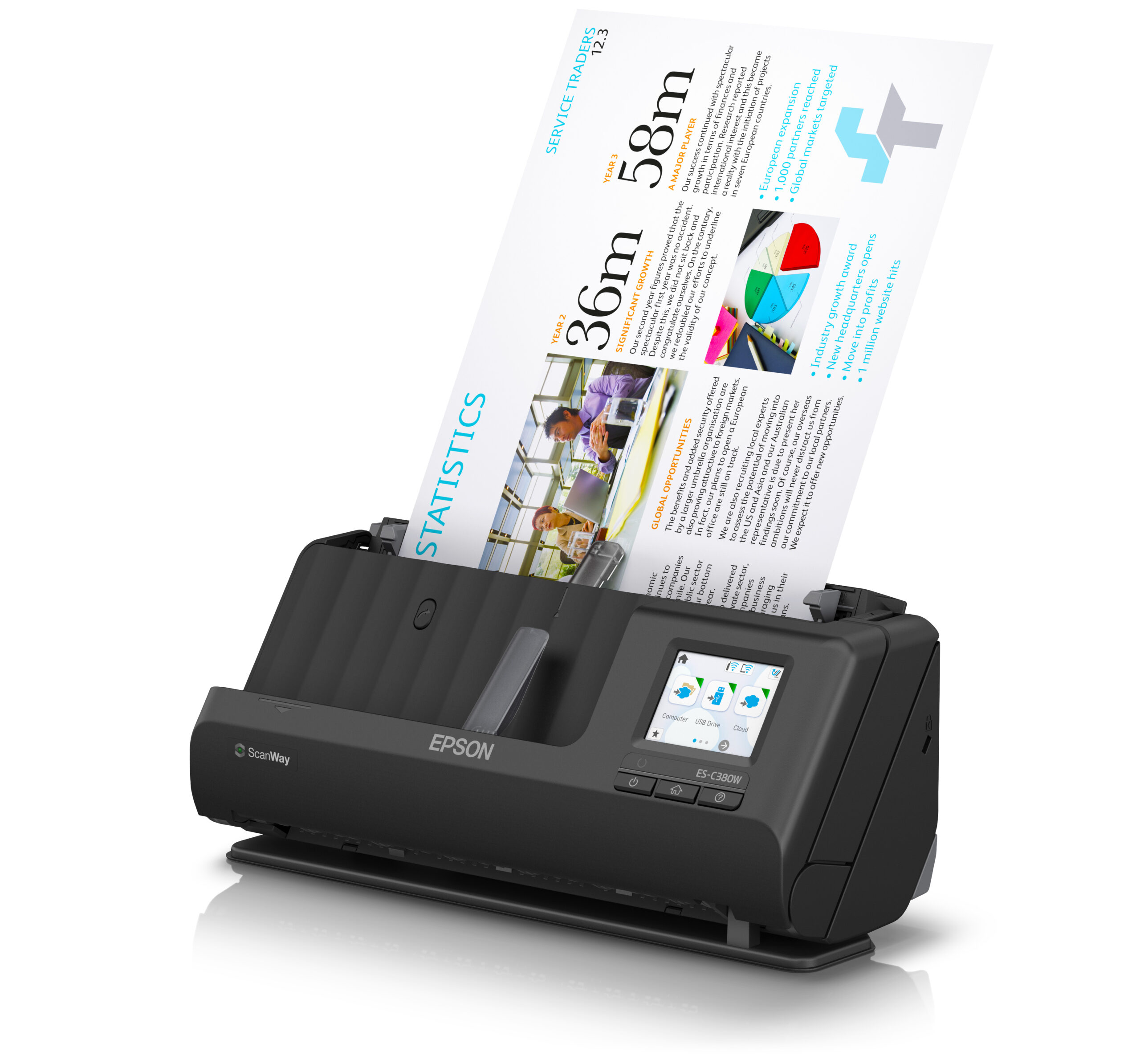 Epson ES-C380W compacte A4-documentscanner met Wi-Fi-connectiviteit en U-traject
