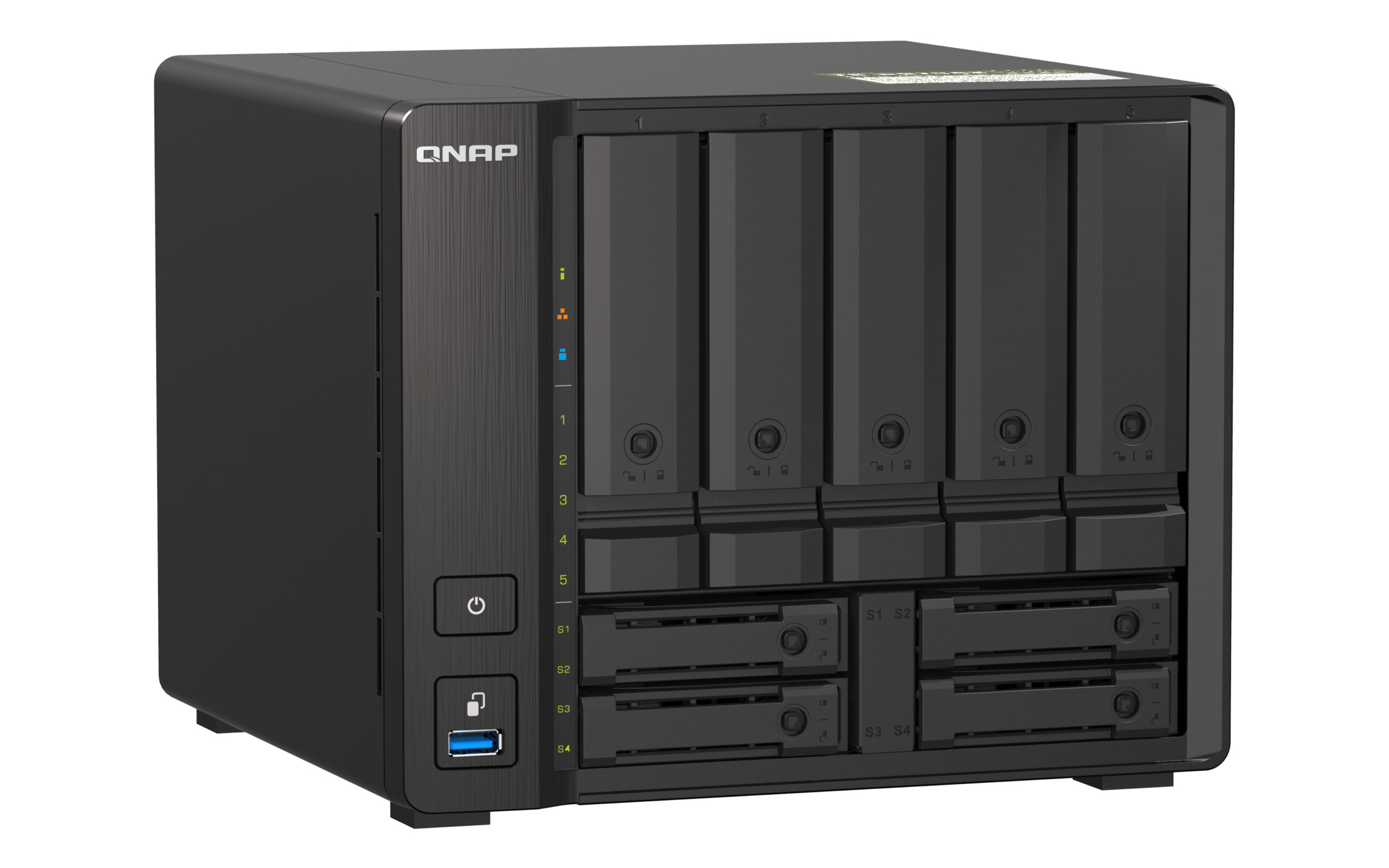 Verbeter de zakelijke productiviteit met de quad-core 9-bay QuTS hero NAS met ondersteuning voor U.2 NVMe SSD en 10GbE/2.5GbE connectiviteit