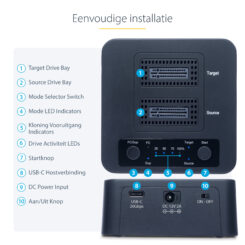 | – HDD/SSD-duplicator – 1 kopieën – Interface: USB 3.2 Gen 2 (3.1 Gen 2) – Materiaal behuizing: Kunststof – 90 GB/min – 77 x 77 x 44 mm – Zwart |