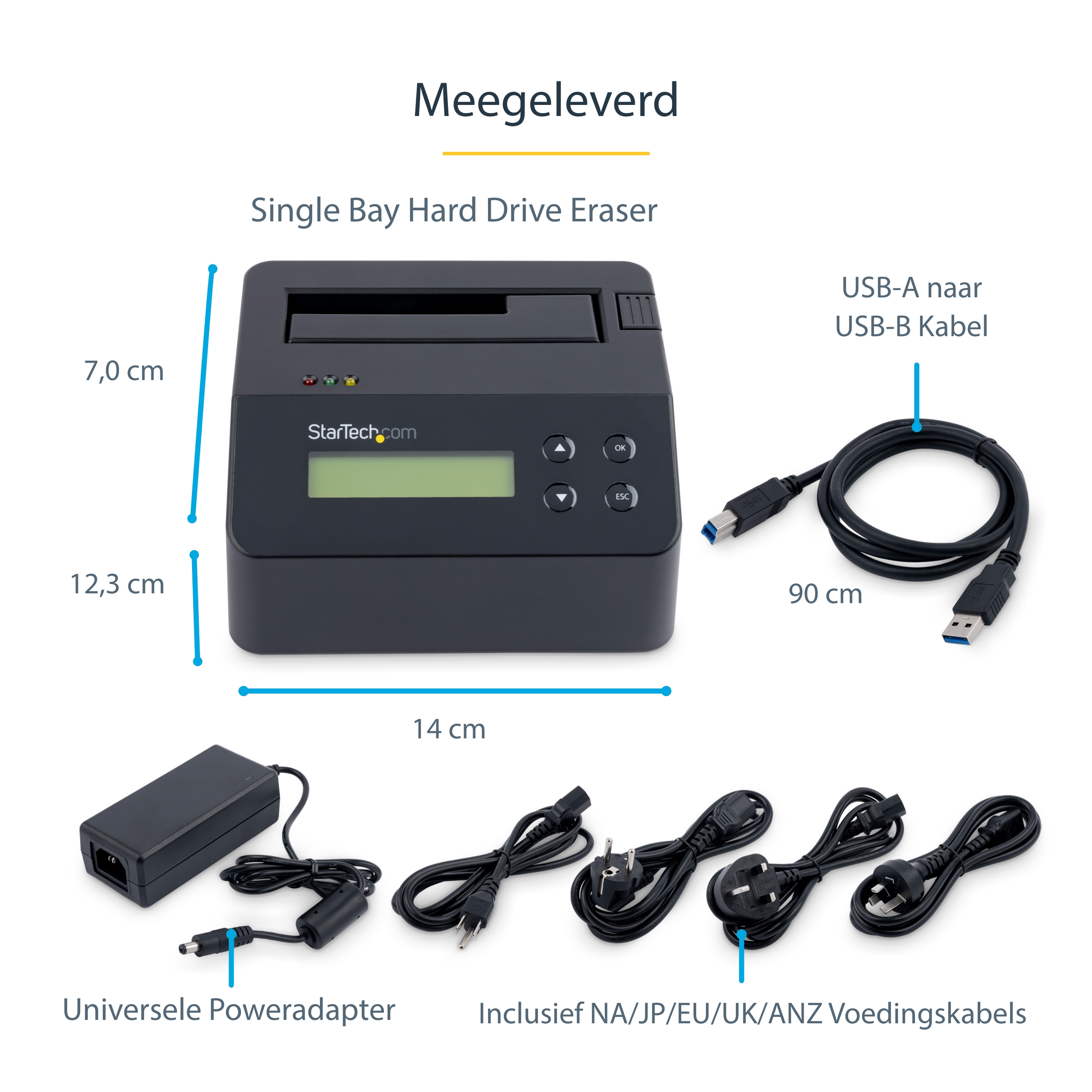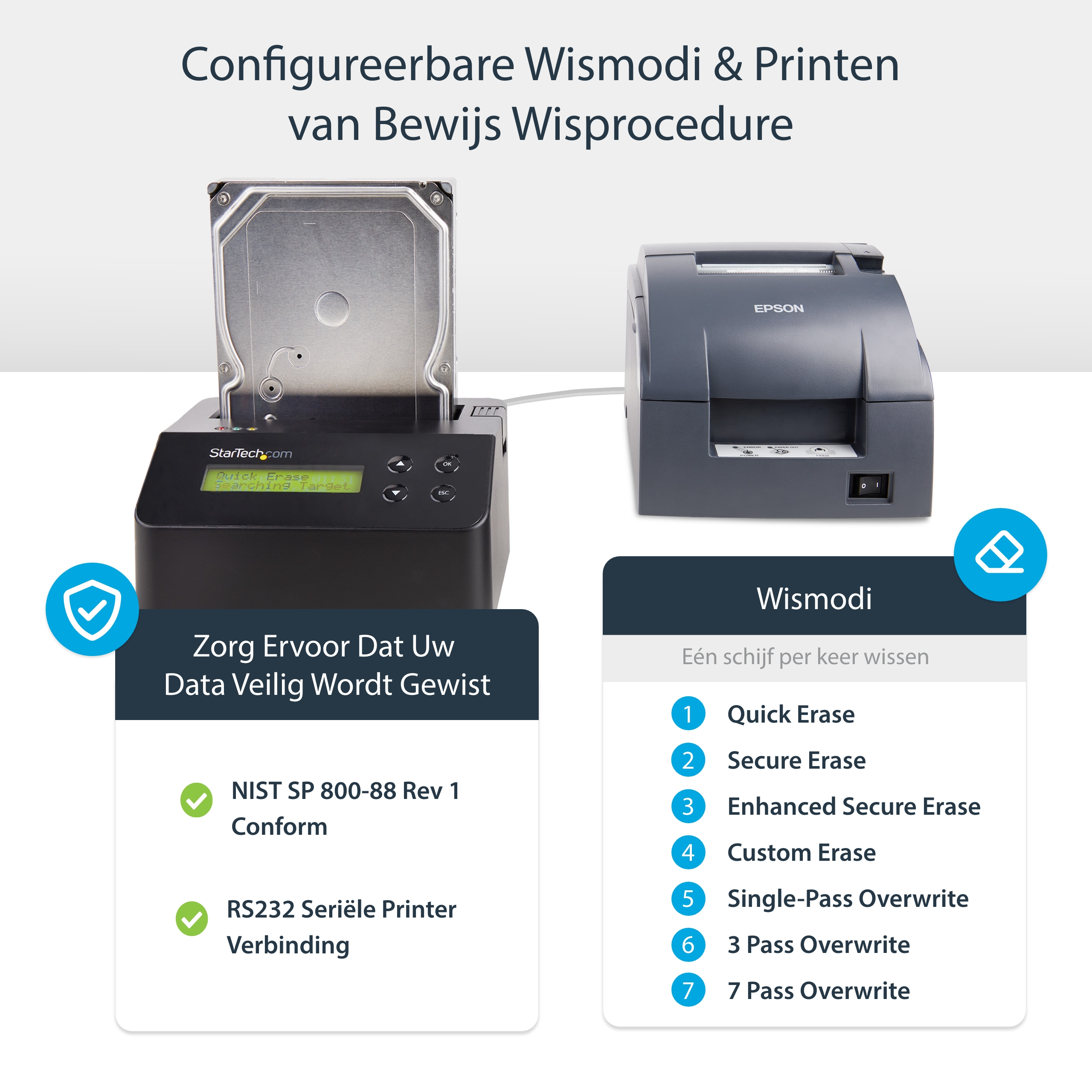 StarTech.com Single Bay Hard Drive Wisser, Standalone HDD/SSD Sanitizer/Eraser, 4Kn, USB 3.0 naar SATA III (6 Gbps), 9 Wismodi, LCD Display, Hard Disk Secure Erase Dock, DB-9 Printer Poort, TAA Compliant