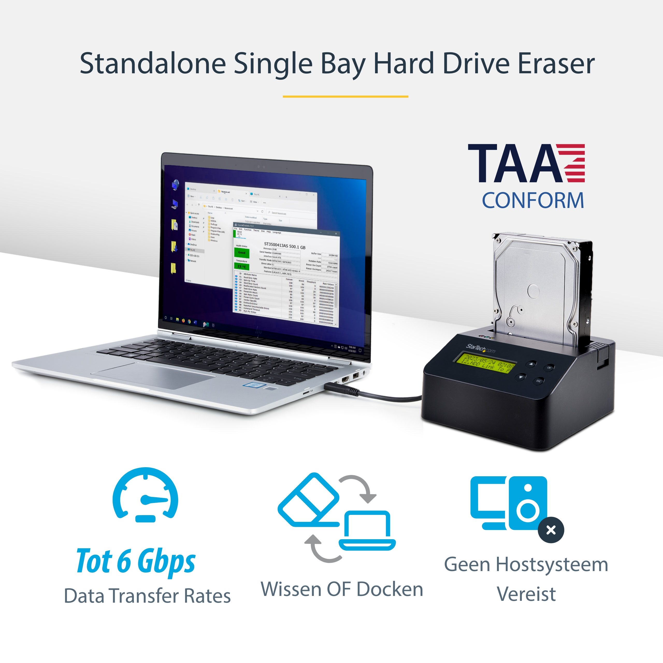 SATA dock en wisser | SATA III 6Gbps | 2.5″/3.5″ SSD en HDD | TAA conform