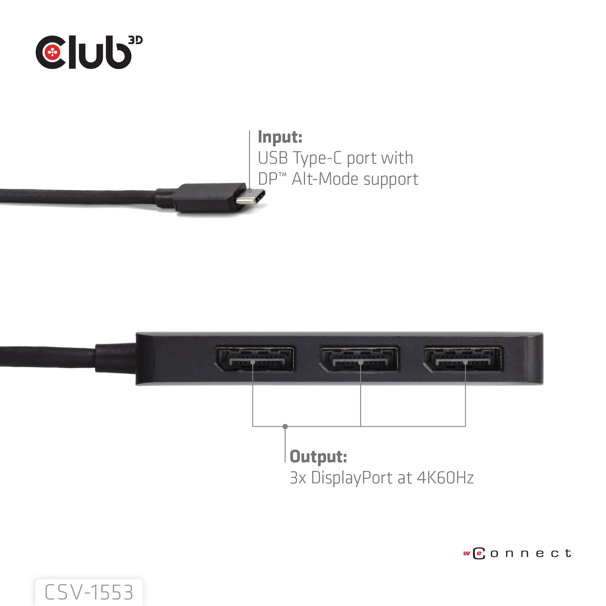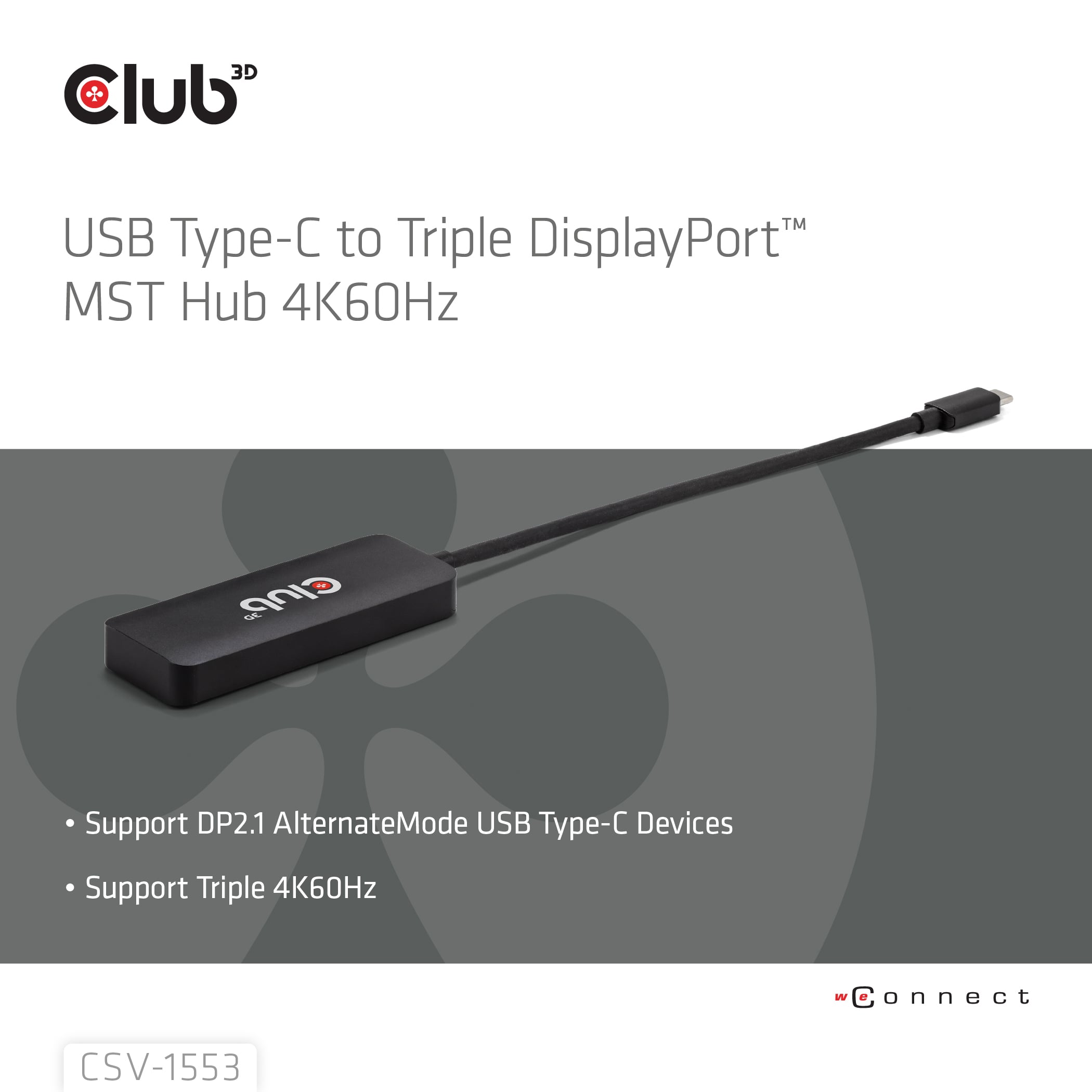 CLUB3D USB-C® to Triple DisplayPort™ MST Hub 4K60Hz
