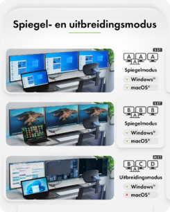 Breid uw schermruimte uit met ondersteuning voor maximaal drie HDMI®-schermen. Ideaal voor multitasking: u kunt meerdere monitoren aansluiten om een bredere digitale werkruimte te creëren met slechts één adapter, zonder ingewikkelde installatie of extra hardware.