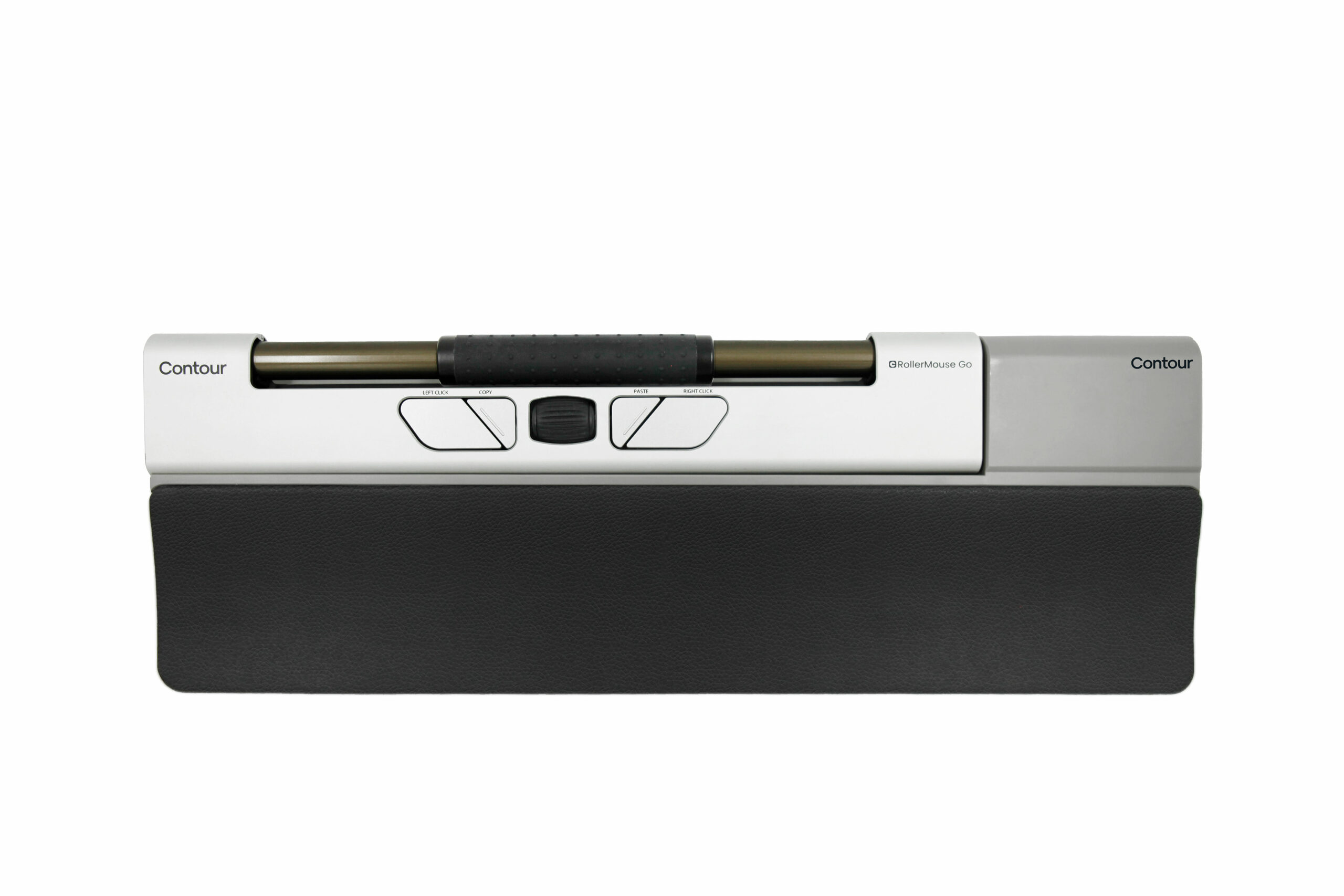 De RollerMouse Go is een compacte en draadloze versie van de bekende gecentreerde muis van Contour. Door de rollerbar te gebruiken, wisselt u automatisch uw werkhouding door zowel de rechter- als de linkerhand te gebruiken, waardoor u de bewegingen vermijdt die gepaard gaan met het gebruik van een klassieke eenhandige muis. Dit vermindert het risico op carpaal tunnelsyndroom. De vijf programmeerbare knoppen en de rollerbar met ingebouwde klikfunctie dragen bij aan een betere ergonomie en meer welzijn Met het RollerMouse Go Dock verandert de compacte RollerMouse Go in een gecentreerde muis op volledige toetsenbordbreedte en polssteun
