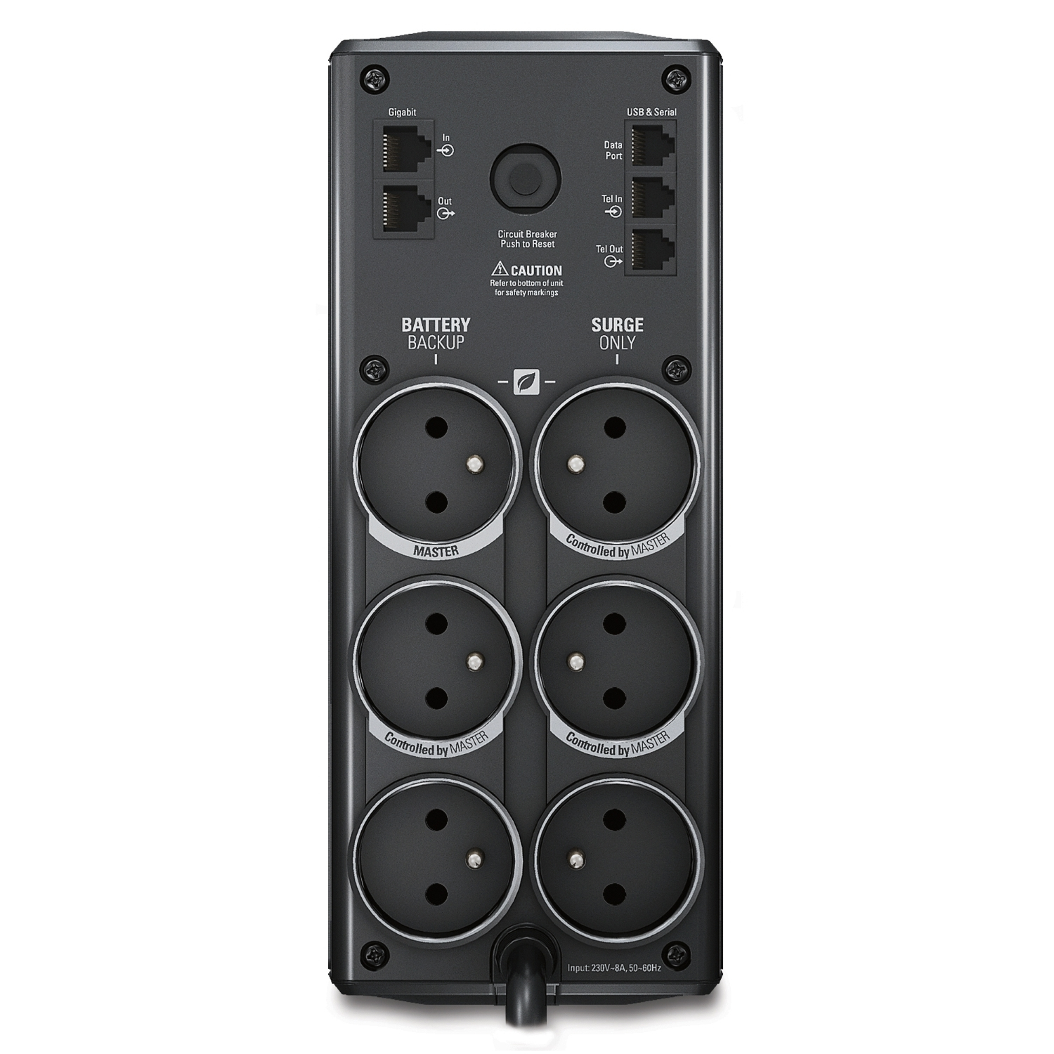 De UPS is voorzien van AVR, dit verlengt de levensduur van de batterij en maximaliseert de runtime door lage en hoge spanningen te corrigeren zonder de batterij te ontladen. Verder beschikt de noodstroomvoorziening over 5 battery+surge protected uitgangen. Tevens is PowerChute Serial Shutdown software en een usb kabel (type B to type A) inbegrepen.