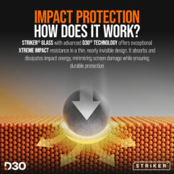 Het glas van de Striker Xtreme Impact Protector is driemaal getempered in hete chemische baden, waardoor het sterker is dan reguliere glazen screenprotectors. Deze unieke productiemethode zorgt voor een buitengewone duurzaamheid en een langere levensduur, zelfs bij intensief gebruik.