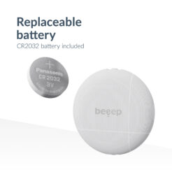 De Beeep BeTag wordt aangedreven door een vervangbare CR2032-batterij, die tot 1 jaar meegaat. Dankzij het efficiënte energiebeheer hoef je je geen zorgen te maken over regelmatig opladen. Wanneer de batterij leeg is, kun je deze eenvoudig zelf vervangen, zodat je tracker altijd klaar is voor gebruik.