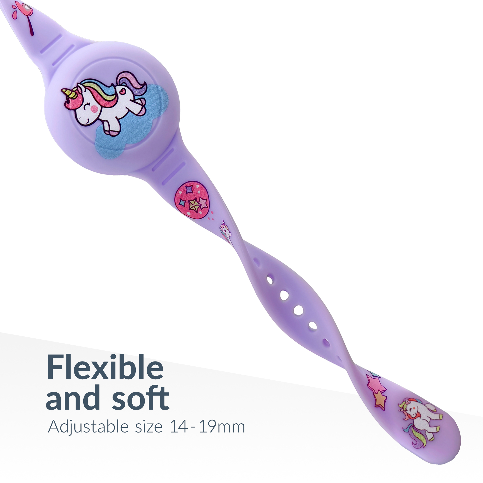 De zachte siliconen polsband voelt prettig aan op de huid en is geschikt om de hele dag te dragen. Dankzij het verstelbare ontwerp groeit de band eenvoudig mee en blijft hij stevig om de pols zitten tijdens spelen, rennen of andere dagelijkse activiteiten.