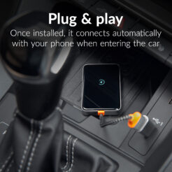 Dankzij de Plug & Play-functionaliteit is de adapter snel en eenvoudig te installeren. Sluit hem aan via de USB-poort van je infotainmentsysteem in de auto en maak, na de eerste installatie, automatisch een draadloze verbinding zodra jij je auto in stapt.