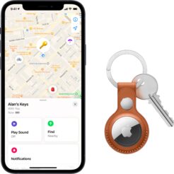 Vergeten waar je je portemonnee hebt gelaten? Geen probleem als er een AirTag aan vast zit. Je kunt een geluid afspelen op de ingebouwde speaker. Ga naar de nieuwe tab Items in de ‘Zoek mijn’-app of zeg “Hé, Siri. Zoek mijn portemonnee”. Ligt hij ergens in de buurt, bijvoorbeeld onder de bank of in de kamer naast je, dan hoef je alleen maar op het geluid af te gaan.