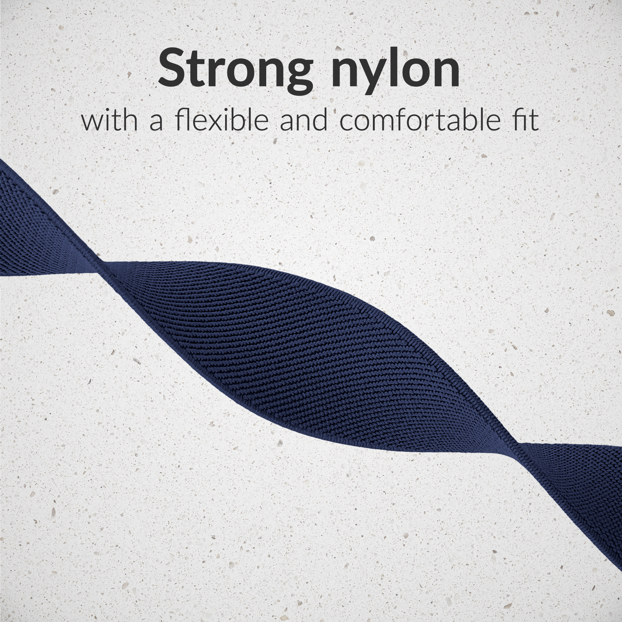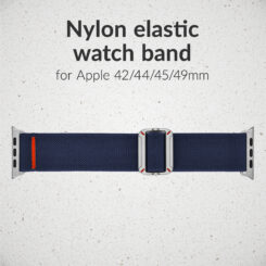 Deze watch band is licht van gewicht en ontworpen voor dagelijks gebruik. De verschuifbare gesp sluiting zorgt voor een perfecte pasvorm, terwijl het duurzame elastische nylonmateriaal zorgt dat je Apple Watch goed op zijn plek blijft. Het strakke, tijdloze design laat zich moeiteloos combineren met zowel sportieve als casual outfits.