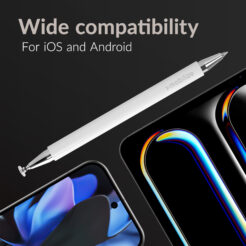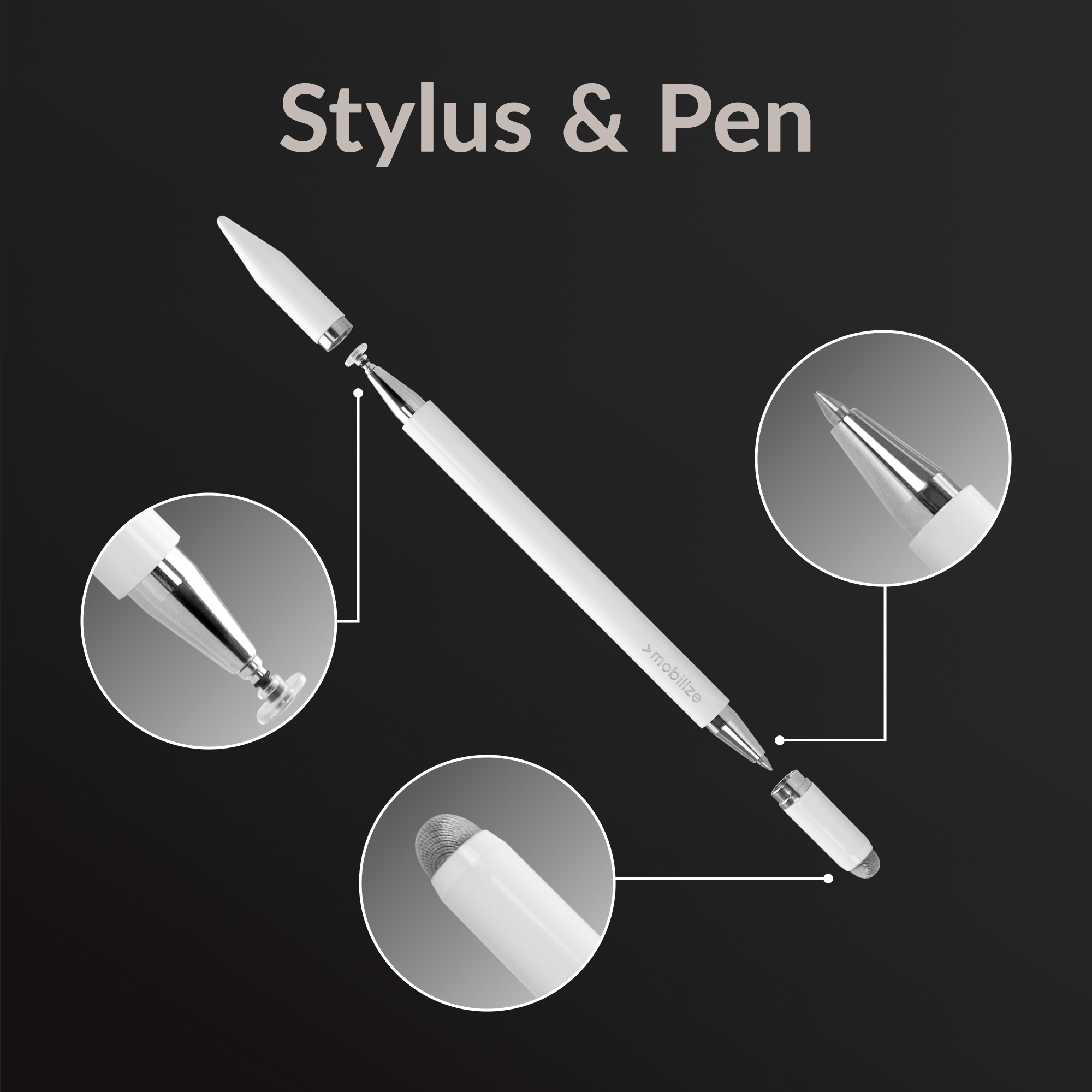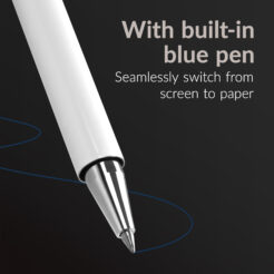 Aan het ene uiteinde van de pen bevindt zich een Precision Disc Tip-stylus die je met uiterste precisie laat werken op touchscreens van smartphones, tablets en andere capacitieve apparaten. Deze tip zorgt voor vloeiende en accurate bewegingen, ideaal voor notities of schetsen. Aan de andere kant vind je een hoogwaardige balpen met blauwe inkt, perfect voor traditionele schrijftaken. In de dop van de balpen is een zachte capacitieve stylus verwerkt waarmee je snel jouw apparaten mee kunt bedienen.