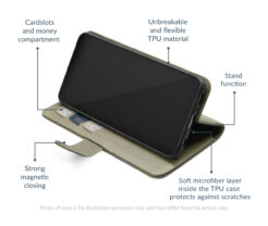 De Mobilize Premium Gelly Wallet Book Case is één van de meest complete cases in de Wallet Book serie. Het hoogwaardige kunstleer met fijne structuur is zorgvuldig uitgezocht. Jouw toestel zet je vast in een zwarte flexibele Gelly cover. De zwarte Gelly cover verkleurt in tegenstelling tot een transparante gelly cover niet, waardoor de uitstraling altijd hetzelfde blijft. Een geïntegreerde magneet in de flap van de case zorgt ervoor dat de case goed afgesloten blijft. De randen zijn afgewerkt met een strak stiksel in dezelfde kleur als de case.