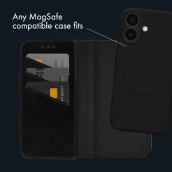 Uitgerust met extra sterke MagSafe-magneten, blijft de wallet stevig vastzitten aan je MagSafe-compatible case of iPhone. Zo ben je verzekerd van een betrouwbare bevestiging, zonder dat de wallet verschuift of loskomt tijdens gebruik. De wallet is ook compatibel met andere MagSafe-compatible cases van verschillende merken. Maar de compatibiliteit kan in dit geval niet volledig worden gegarandeerd vanwege verschillen in magneten en magneetsterktes per fabrikant.