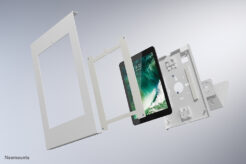 De tablethouder is voorzien van een anti-diefstalslot en kan zowel op een tafelblad als aan de muur worden geïnstalleerd. Anti-slipkussentjes in de casing beschermen de tablet tegen eventuele krassen en de stalen constructie zorgt voor een veilige en solide plaatsing. Het kabelmanagementsysteem maakt het mogelijk om kabels door de casing te geleiden.