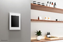 De tablethouder is voorzien van een anti-diefstalslot en kan zowel op de wand als op een VESA steun worden geïnstalleerd. De stalen constructie zorgt voor een veilige en solide plaatsing, terwijl het kabelmanagementsysteem het mogelijk maakt om kabels door de casing te geleiden.